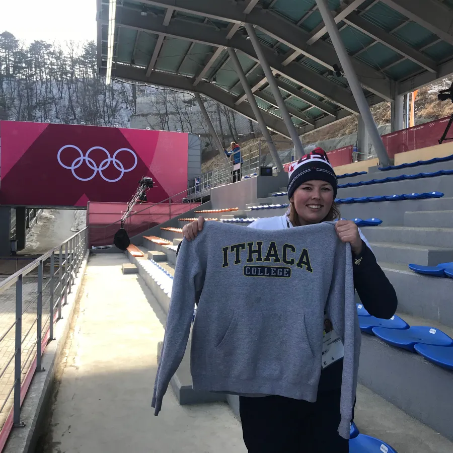IC Grad Kristen Gowdy, '16 was in Pyeongchang, South Korea for the 2018 Winter Olympics covering bobsled and skeleton events for the USA Bobsled and Skeleton Federation. She took a break from her reporting duties to remind everyone that, whether in the United States or South Korea, it's always a great day to be a Bomber!