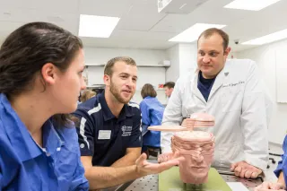 A strong foundation in anatomy is essential for those studying in the health sciences. Gross anatomical dissection has been performed for hundreds of years to understand the relationships of the bodies systems, organs, and tissues. Although the material being studied in anatomy has not changed much over that time, the advancements in technology and instruction have come a long way. In the Human Anatomy Lab, you will be able to examine the tendons and muscles you're learning about in the classroom up close. Then see how they function and track how they interact with other parts of the body in an experience you can’t replicate in any other way. Faculty are able to integrate gross anatomical dissection with modern teaching tools like virtual imaging, electronic resources, and video technology to aid you as a contemporary student.
