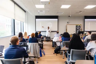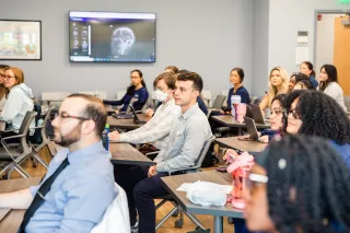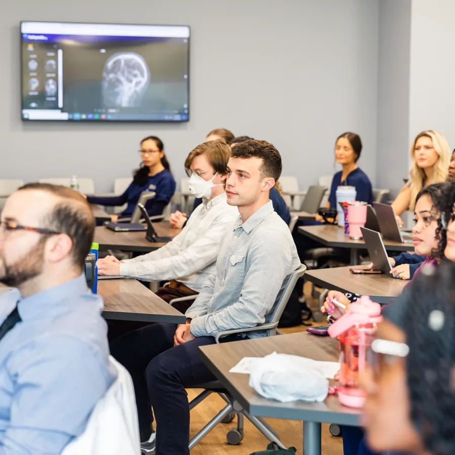 Learners in a classroom, located in the Physician Assistant building.