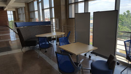 During the 2016 spring semester, brand new furnishings were added to the third floor lobby. Movable chairs, tables, and whiteboards, as well as multiple booths, make this area a popular place for study sessions and our TA office hours.