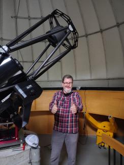 The telescope is a model CCT-16, 0.4m f/8 Cassegrain telescope, manufactured by DFM Engineering, Inc. The telescope is contolled by a computer in the warm room to achieve a blind pointing accuracy typically better than 1 arc-minute. This is smaller than the field of view of our CCD camera on this telescope, so the acquisition of celestial objects is easy and very accurate.