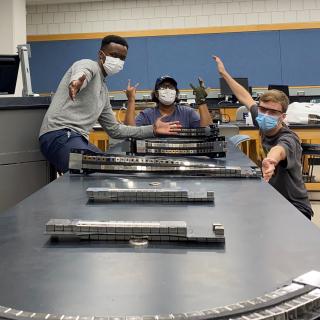 Students studying superconductors build magnetic levitation and suspension demonstrations. All the tracks were built at Ithaca College!