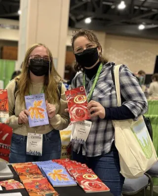 The book fair was where Chloe Eberhard and Emily Fischer were stationed. “At the Novel Slices booth, I helped answer people's questions about the magazine and sell copies of previously released volumes,” said Emily. “Since Novel Slices is a relatively new publication, it was exciting to spread the word about it at AWP.”