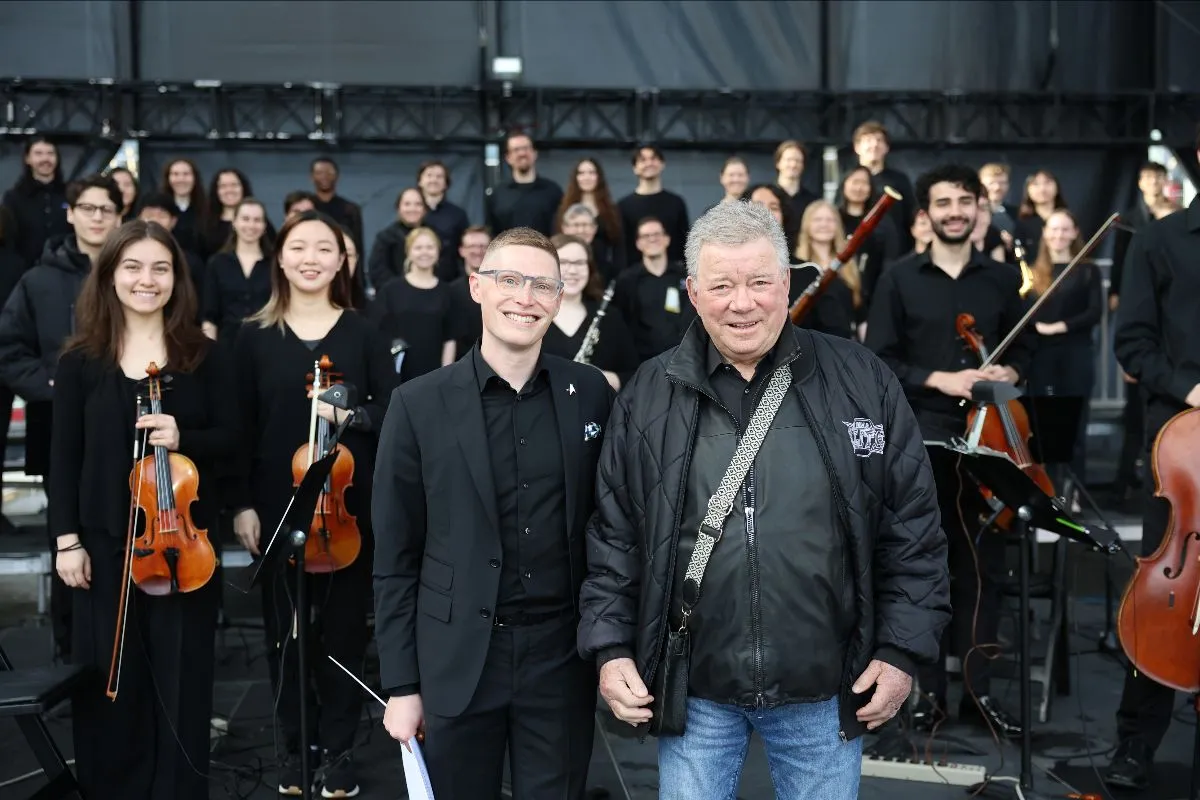Dominick DiOrio '06 | On April 8, Dominick DiOrio '06BM (now Professor of Music at Indiana University) conducted NOTUS and IU Jacobs School of Music instrumentalists in his original work "Eclipse Music for William Shatner," which accompanied the famous actor's original spoken-word narration, performed at the IU Memorial Stadium moments before eclipse totality.