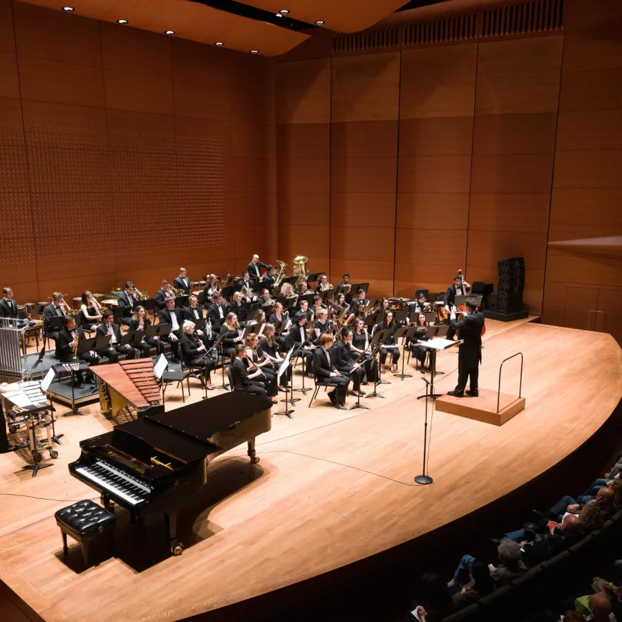 The majority of performers in this ensemble are music majors. The Concert Band ensemble performs four to six concerts per year both on and off campus. The ensemble's repertoire consists of the finest traditional and contemporary literature for the full concert band. The Concert Band rehearses four hours per week on Tuesday/Thursday.