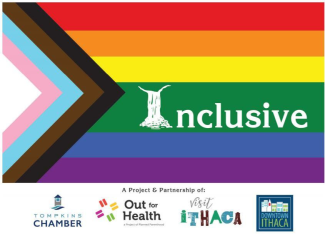The ‘Ithaca is Inclusive’ window clings represent a project and partnership of the Tompkins Chamber, Visit Ithaca, the Downtown Ithaca Alliance, Ithaca College's Center for LGBT Education, Outreach & Services, and Planned Parenthood’s Out for Health program. Each organization values diversity, inclusion, and respect, and seeks to offer resources to businesses and organizations in our community.