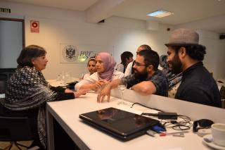 With students after a lecture. Summer school on Critical Muslim Studies: Decolonial Struggles and Liberation Theologies, Granada, Spain, 2014.