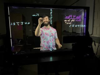 Noah Rosenzweig creating instructional videos using a light board in the PER lab
