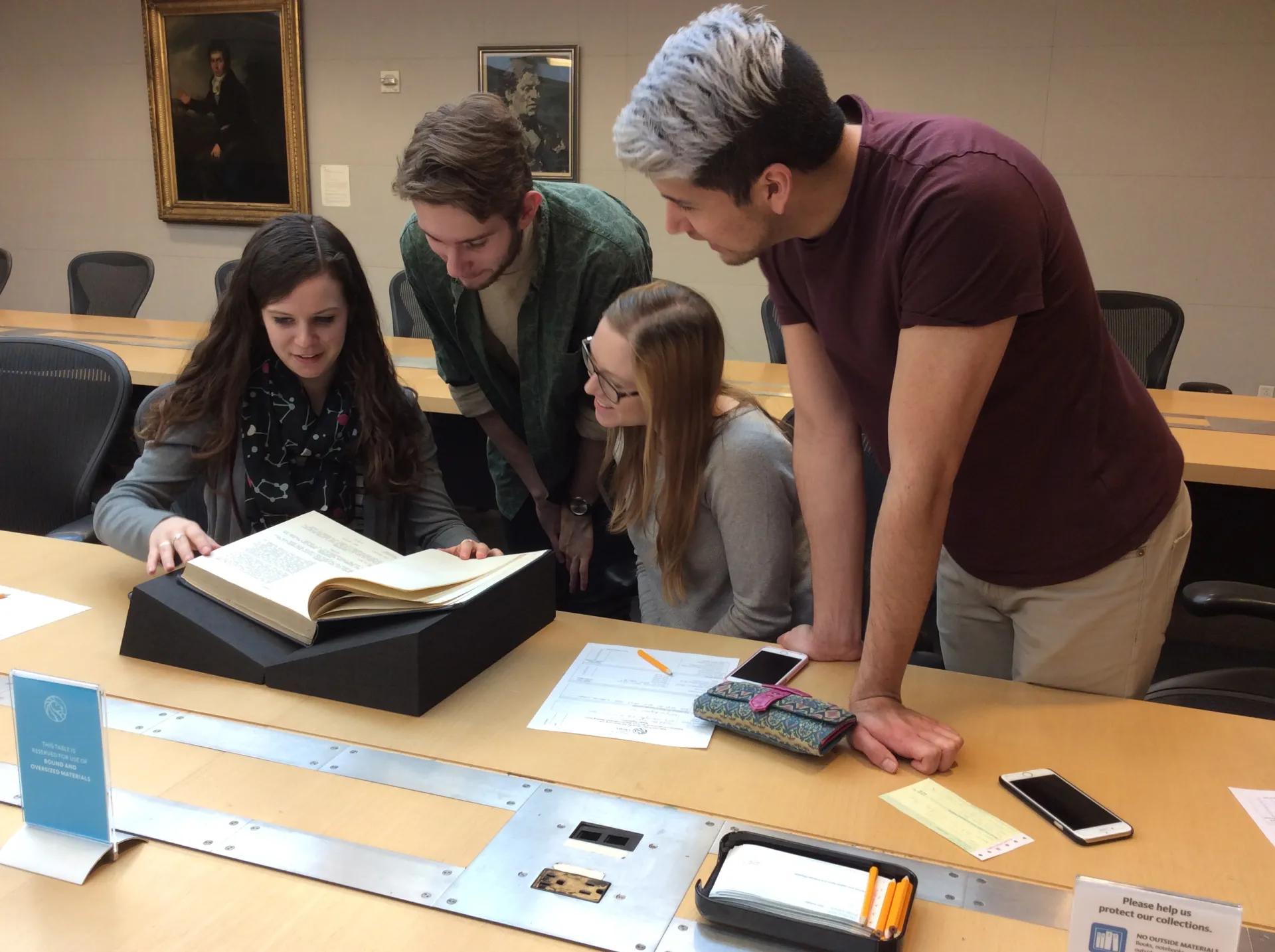 Theatre Studies students are introduced to the Special Collections and archive room of the New York Library for the Performing Arts during Field Studies (2016).