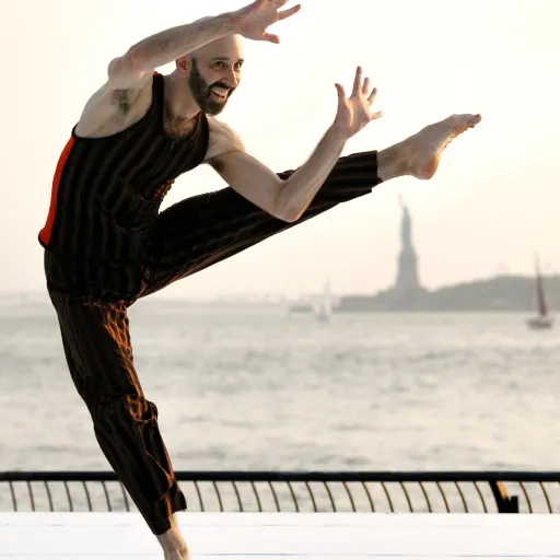 In 2022, conceived, directed, and choreographed Guests Only, a devised 40-minute theater dance work which premiered November 30-December 4, 2022 at the Hoerner Theatre. The production, a collaboration with the Ithaca College School of Music, Theatre and Dance’s Jazz Ensemble, a cast of fifteen musicians and nine dancers, is a vibrant, theatrical dance scored to classic jazz music, and was performed live. Celebratory and upbeat, the dance presents a voyeuristic view into the intimate confines of a private gathering devoted to the merging of music and dance. Finding inspiration from the great canon of jazz artists, the choreography blends vernacular and virtuosic movement into an energetic, exuberant mix, highlighting a range of emotions and a rigorous exploration of speed. The dance, living at the intersection of concert dance and theater, follows a clear narrative with consistent characters.