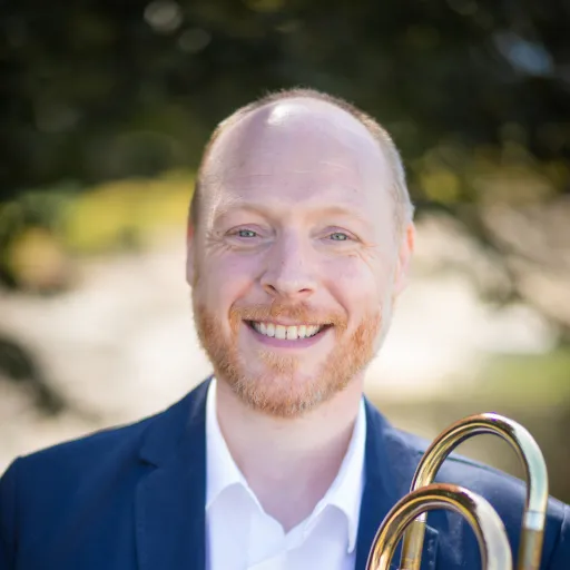 Originally from the United Kingdom, Dr. Will Porter (he/him) joined the faculty at Ithaca College in 2022 as Assistant Professor of Trombone. Previous teaching engagements have included Eastern Illinois University, University of Wisconsin-Madison, and University of Wisconsin-Whitewater. Will has performed with orchestras throughout Europe, South America and North America, including the London Philharmonic Orchestra, Royal Philharmonic Orchestra and Gustav Mahler Jugendorchester. From 2009-2014, Will held the position of Co-Principal Trombone with the Orquesta Filarmónica de Santiago, in Chile. In 2021, he was invited to play Solo Trombone with the Fountain City Brass Band with whom he went on to win the U.S. Open Brass Band Championships, Gateway Brass Band Championships, and North American Brass Band Championships. He has commissioned and premiered numerous works for solo trombone, performing them at events such as the International Trombone Festival and the American Trombone Workshop, and in 2022 was named winner of The American Prize for the performance of American music.