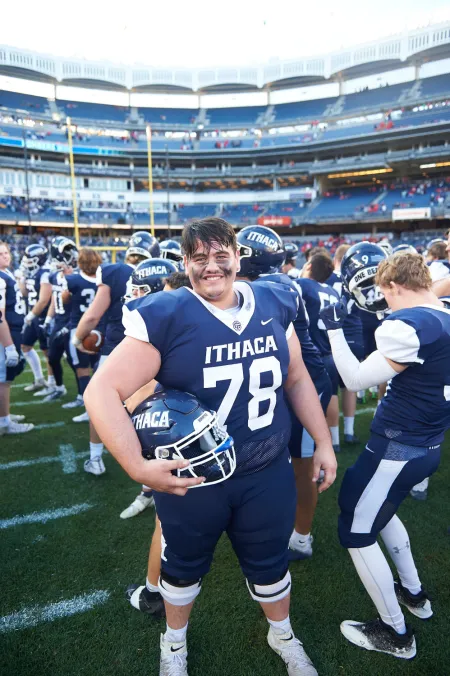 Nick Capodilupo ‘24 on the field at Yankee Stadium for the 2022 Cortaca Jug game versus SUNY Cortland.