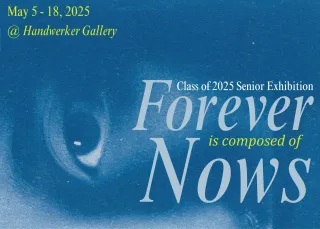 Forever is composed of Nows is an exhibition comprised of 33 graduating Ithaca College Seniors working in painting, drawing, sculpture, photo and video. This student led exhibition is curated by Isabelle Ackerman '25, and features work by Abigail Simoncini, Corrie Youker, Kaylie Jacobs, Ainsley Perkins, Dahye Eun, Leila Marcillo-Gómez, Alex Neuhedel, Dalton Toner, MaCaleb Earle, Anna Gras, Fia Prestigiacomo, Madisen Purslow, Ariana Gonzalez Villarreal, Goldie Sullivan, Martin Lowry, Austyn Johnson, Greta Karcher, Meg Chevallard, Bambi Rinard, Bella Petito, Naomi Rosenthal, Cameron C. Small, Isabella Sloan, Nico Mooney, Caroline Hoskins, Jem Taylor Minier, Roxanna Devine, Cavan Cronin, Joshua Cheeseman, Safara Kalei Vaché, Chloe Zonis, Kalysta Donaghy-Robinson, and Zhannz Gomez.