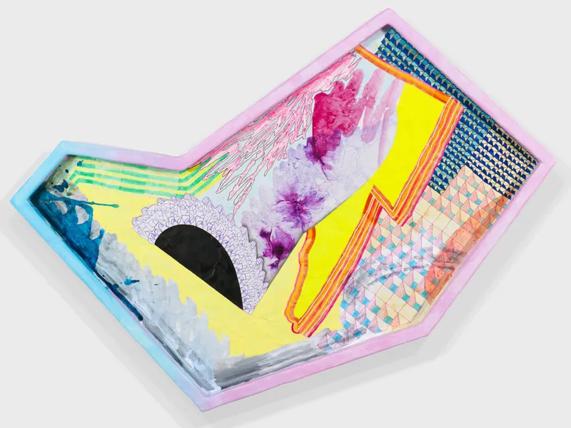 Epstein’s work asks questions about the visual culture associated with gayness. Discordant combinations of hues, marks, and patterns are layered, interrupted, and obfuscated until finally forced into crooked and irregular polygonal frames. Works on paper establish and then seem to drift from or defy their own microcosmic systems of logic. Exploring the overlapping politics of taste, pleasure, aesthetics, and symbolism, the works eschew expectations of their tradition, their painted surfaces slipping out of any legible lexicon.