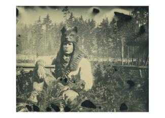 A Tintype is a one-of-a-kind positive image on a metal plate and a popular visual medium of the Mid 1800’s. Around this time my ancestors were being forced to decide between signing away most of their rights in treaties or face extinction by colonizers. These portraits are created by documenting people's avatars in the cowboy roleplaying video game Red Dead Redemption 2. In the game you can create and play with around 24,000 other real people online daily. Most people create some sort of cowboy player but there are forums and social groups of players that choose to create their characters or avatars as Indians in the game. I have been meeting up with them in the game and taking Tintype portraits of them in this virtual world. I’m curious about why someone would want to roleplay as a Native American character during one of the hardest times in their history. Is it because the romanticized images of the so-called vanishing Indian have become so commonplace in common media? Do they not know that these images have fueled identity issues that many natives still struggle with? Do they think that by playing as these figures that they are somehow honoring us? Just as they think they honor us with a school mascot. Do they hope to find some connection to the native experience that will help with the guilt? Or do they just like to root for an underdog?