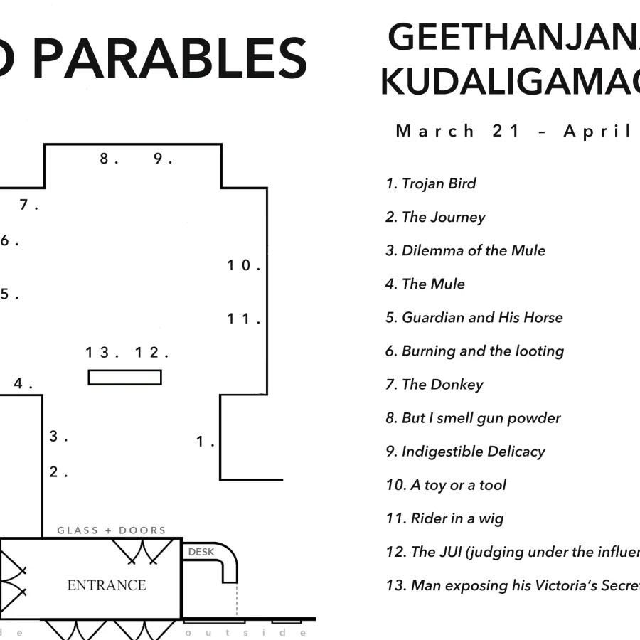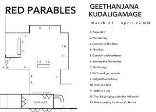 Geethanjana Kudaligamage's artistic journey has been profoundly influenced by the tumultuous and violent events of the Sri Lankan civil war spanning from 1983 to 2009. The birthplace of the "modern" suicide bomber, the Tamil Tigers, Sri Lanka's civil war left an indelible mark on his work, fueling a relentless pursuit to confront and reconcile the horrors of the past through art. Sri Lanka's landscape serves as a poignant and enduring muse that continues to shape his artistic expression to this day. Titles such as "But I smell gunpowder" "Burning and the looting," and "Trojan Bird" evoke the visceral imagery and emotional weight of living in a conflict zone, where violence and loss were daily realities. These evocative titles offer a glimpse into the complex interplay of colonial trauma and survival.