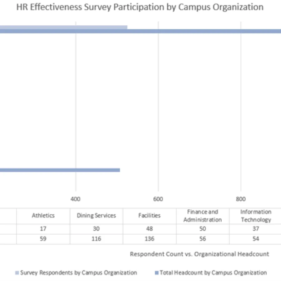 All faculty and staff, with the exception of student employees, were invited to complete the HR Effectiveness Survey, between February 2 and February 26, 2023. The survey consisted of 52 questions. This survey precedes in-person campus visits, which HR will conduct throughout 2023, to hear from campus organizations about their relationship with HR.