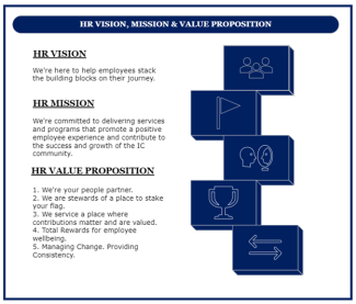 We use building blocks as a motif to define the various touchpoints that HR engages with each employee during their tenure at IC—including recruiting, onboarding, salary review, assignment change/promotion/transfer, training and development/upskilling, and offboarding.