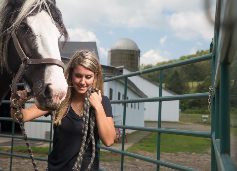 As a volunteer at Kali’s Klubhouse, a nonprofit organization at Fargnoli Farms in Apalachin, New York, Kendra Hubal prepares horses for therapeutic riding sessions with at-risk teens, children with special needs, and veterans.