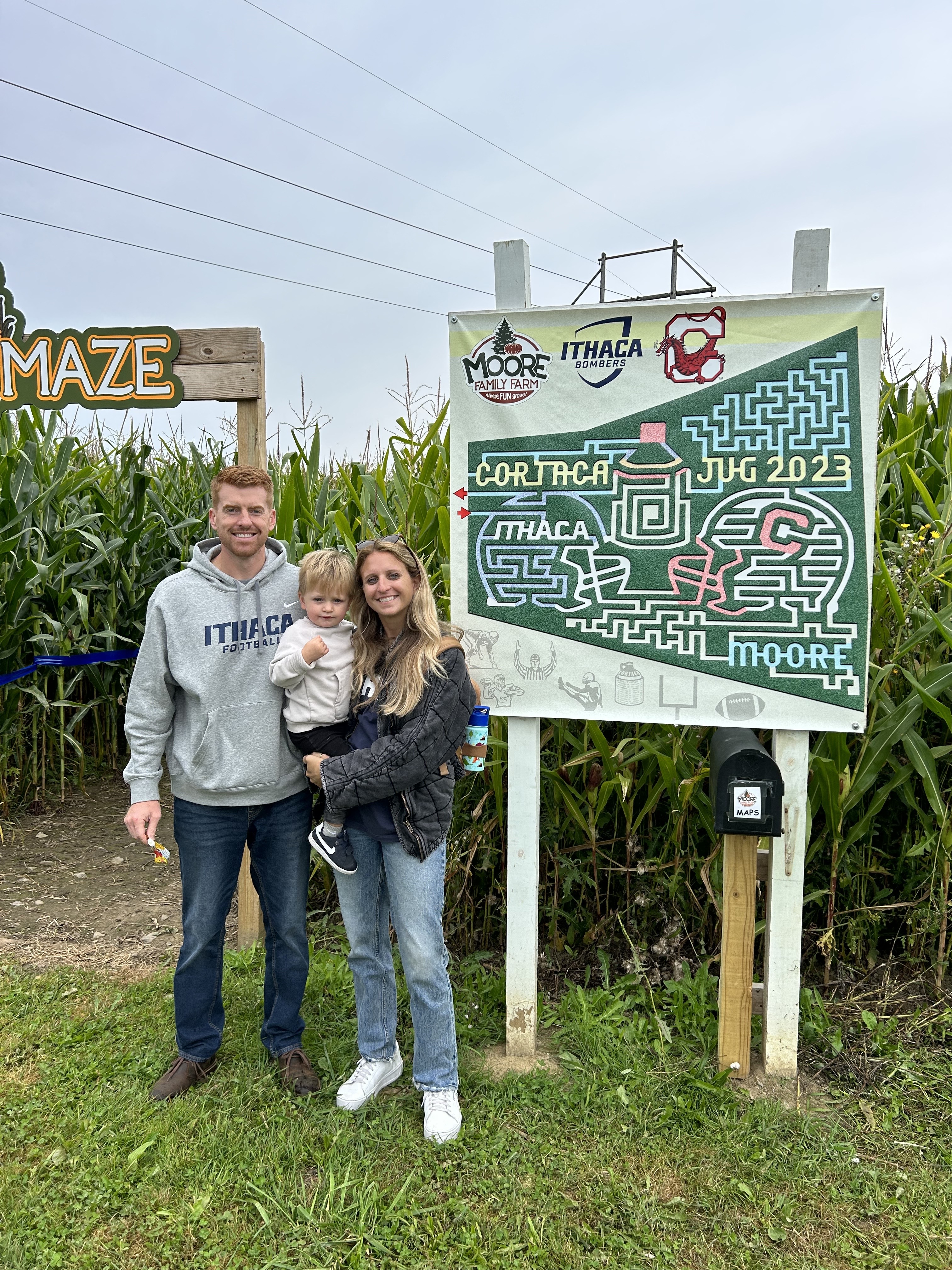 Each year, the Moore Family Farm in Groton, New York, cuts a unique five-acre maze into one of their cornfields for their annual fall festival. In fall 2023, their creation paid tribute to the football rivalry between the State University of New York at Cortland and Ithaca College—and the iconic Cortaca Jug. The maze was in the shape of Ithaca and SUNY Cortland football helmets with the jug between them.