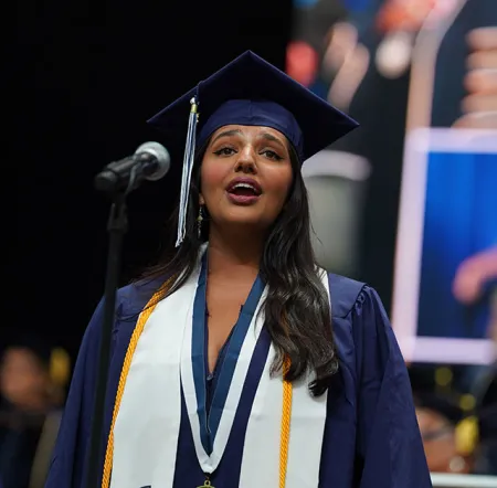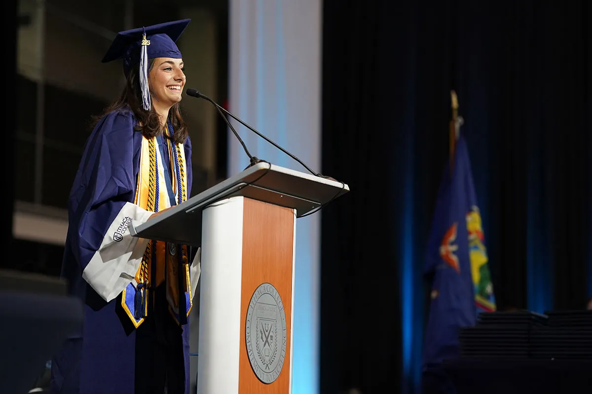 But he ultimately determined his best approach was “to just be myself,” he said to the audience of close to 7,500 in the packed arena on Sunday, May 21. “When I began wrestling with what I could possibly speak to you about, I remembered the first rule of writing—Write what you know.