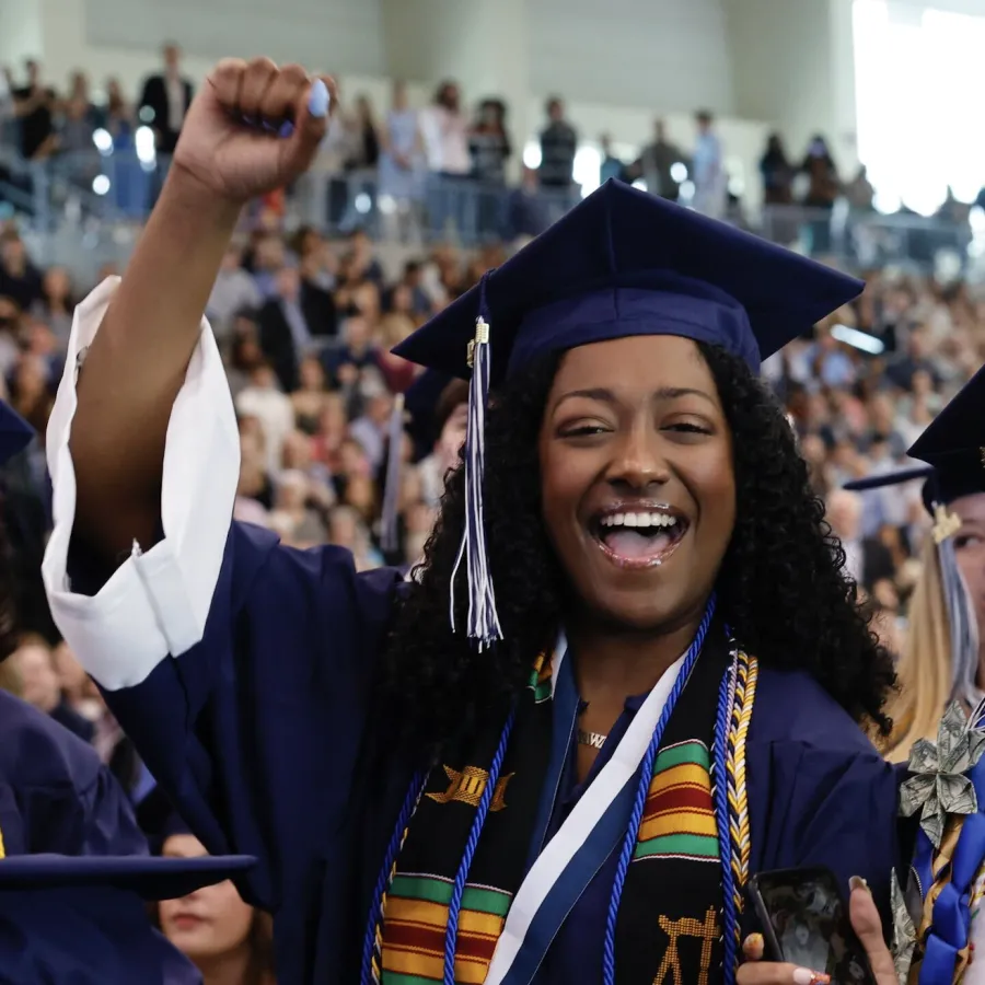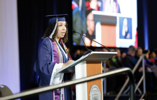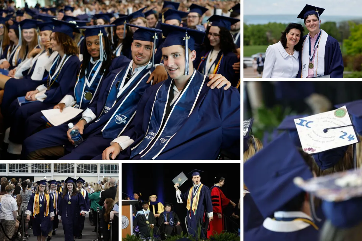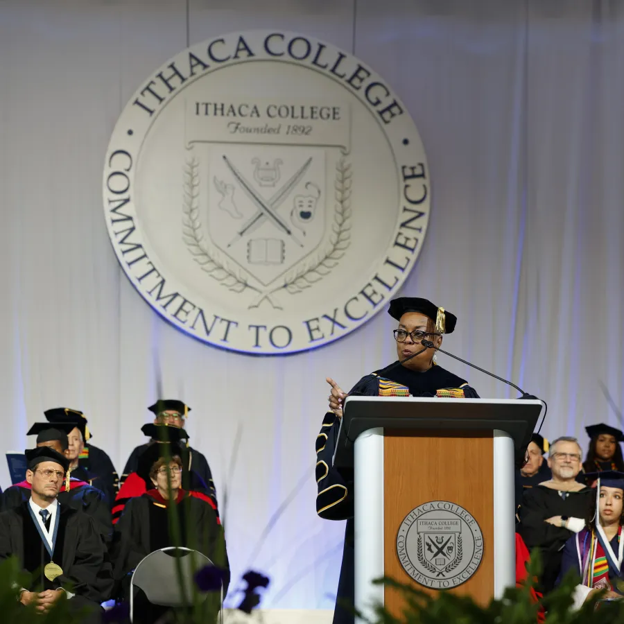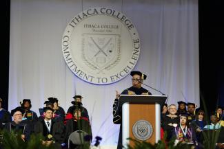 DeLand was the featured speaker for Ithaca College’s 129th Commencement ceremony, held on Sunday, May 19, in the Athletics & Events Center on campus. For the more than 900 students who heard their names called in front of their families and other loved ones, it was a well-earned celebration, coming after a college career defined by a spirit of resilience.