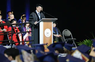 “Some see a place of conflict, division, strife, and struggle,” DeLand said. “Others know it as the most advanced, the most blessed, the most capable world in human history. Whatever view you try on, one thing is certain. Your generation, you in the seats here today, are being called on right now. And you have a mighty calling! It is you who will build the businesses, raise the families, create the ideas, do the work that will define your time. It is you who will solve the problems we humans face today and win the opportunities of tomorrow.”