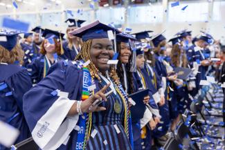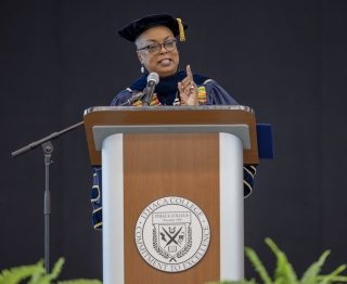 The importance of community, self-care, and finding your voice — together with praise for IC faculty and staff — emerged as themes shared at Ithaca College’s December 2024 Commencement Ceremony, held on Sunday, December 15, in the Athletics and Events Center.