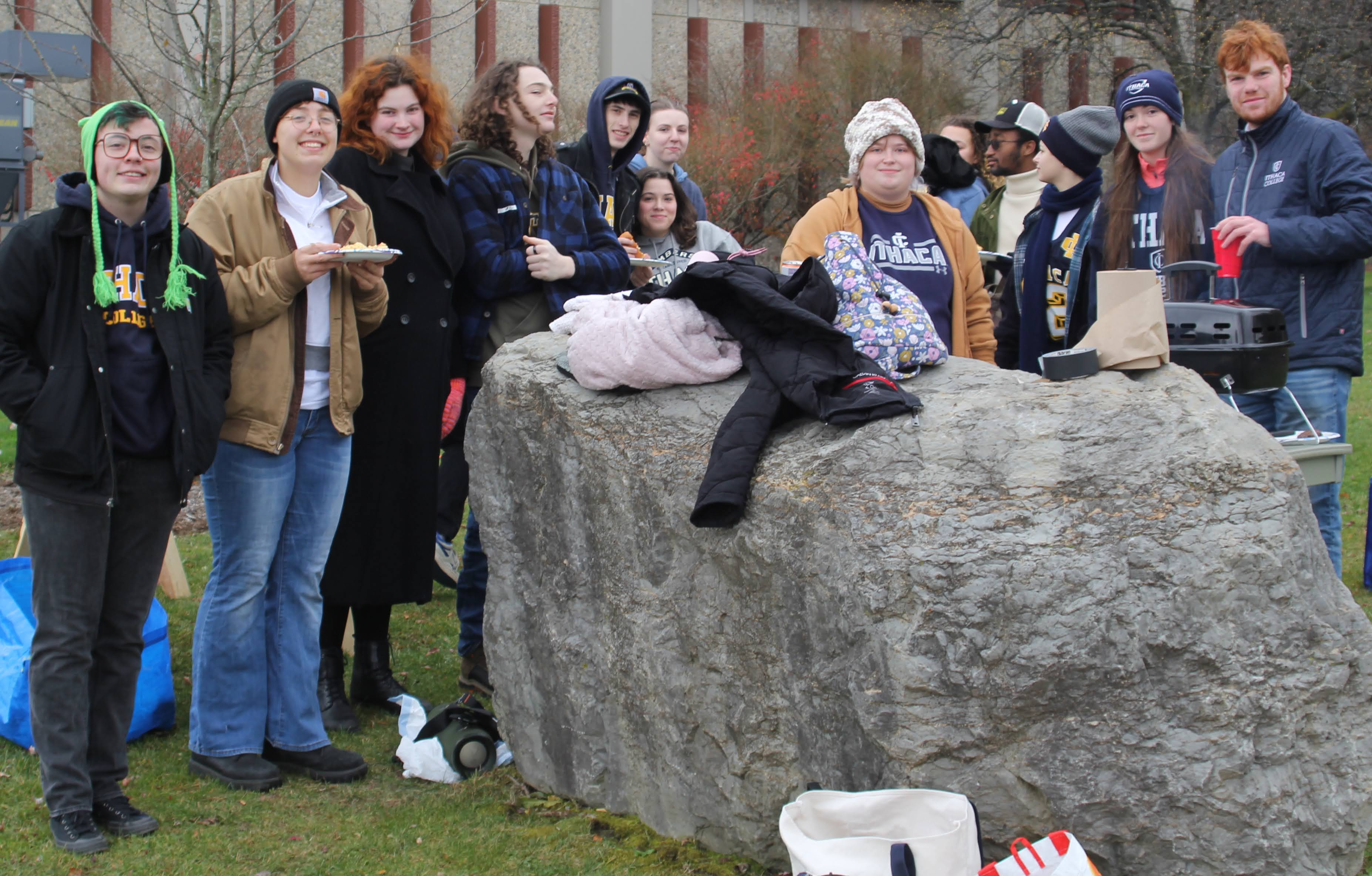 Chris Strand ’13 was not content to watch it online. He left Indianapolis at 5 a.m. Friday and drove 10 hours to the Ithaca College bookstore where he loaded up on gear for himself and his wife, a 2012 alumna. Then he did exactly what he did all four years at Ithaca College: he stayed with his roommate Matt Hartz ’13.