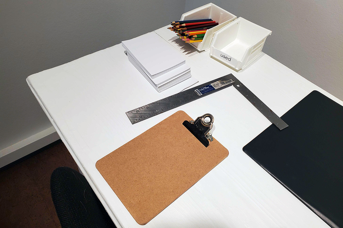 When the pandemic first hit in March 2020, the gallery, like the rest of the college, had to adjust quickly. The staff was able to photograph the current exhibitions to present in an online gallery. Curatorial intern Abby Haley ’20 was tasked with putting together an entirely virtual senior showcase to honor the work of her classmates. The result was “Again, again, again, & again,” a website where anyone could view the paintings, prints, photographs, sculptures and video projects created by the Class of 2020.