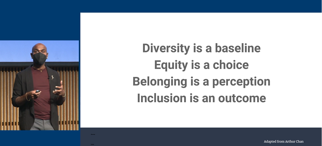 “Dr. Bhattar's presentation was intended to specially name and keep this critical topic at the forefront of our dialogue,” said Moylan. “They encouraged us to self-evaluate our various identities; consider how we enter spaces with these identities and how others may enter spaces with theirs; consider the role of historical impact and trauma that plays out today via structural inequities which subsequently lead to disparate impact; know the difference between equity and equality; and offered important self-reflective questions we should be asking when engaging with the campus community.”