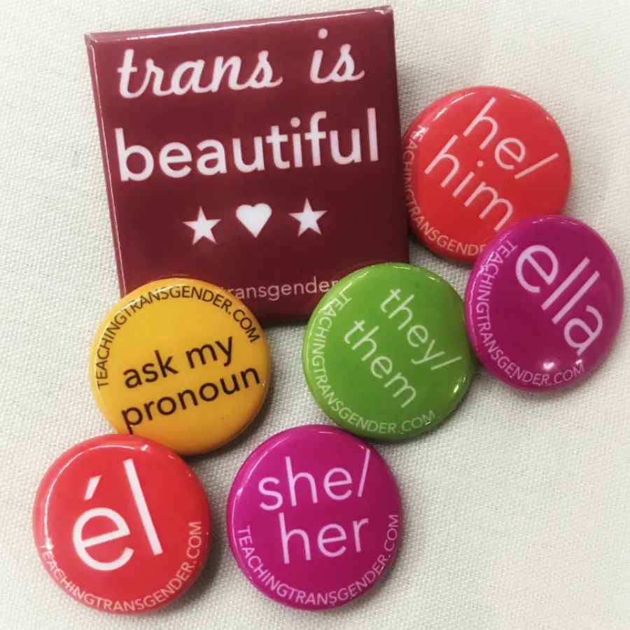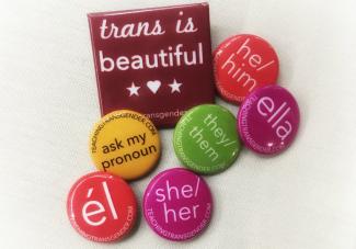 In the run-up to International Pronouns Day, the LGBT Center is launching a social media campaign featuring members of the college community wearing buttons with their pronouns. Cal Goodin ’19, a student who works in the LGBT Center, designed a series of Facebook frames to raise awareness of the holiday.