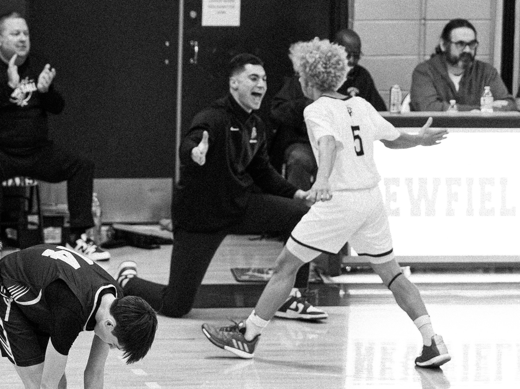 When Mendel isn’t standing in a football huddle at Butterfield Stadium, he’s drawing up plays on the sidelines of the basketball court as the Trojans’ first-year head coach. And along with his energy, enthusiasm, and coaching knowledge, he’s brought reinforcements to Newfield, in the form of the teammates who routinely show up to cheer on his squad.
