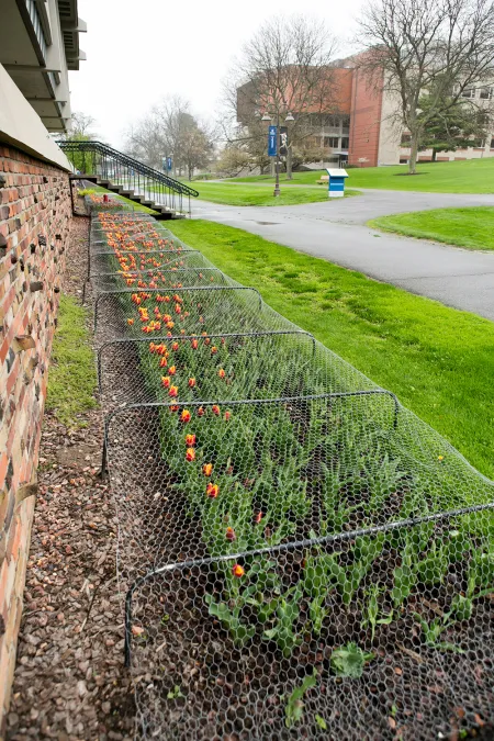 Of course, this idyllic scene will be somewhat grayer if the weather isn’t cooperating. And that’s the nature of commencement preparation as well — dependent upon the peculiarities of the weather and area wildlife, whose wily behaviors evolve from season to season. But each year, the two-dozen members of the Ithaca College grounds crew rise to the occasion.