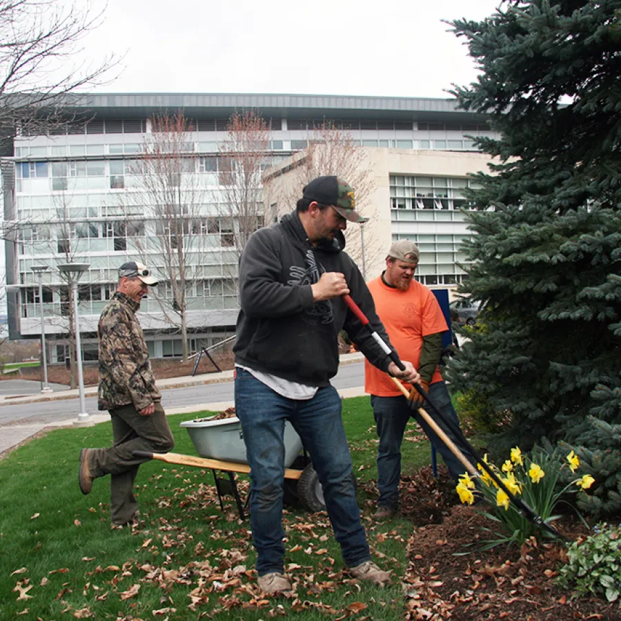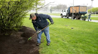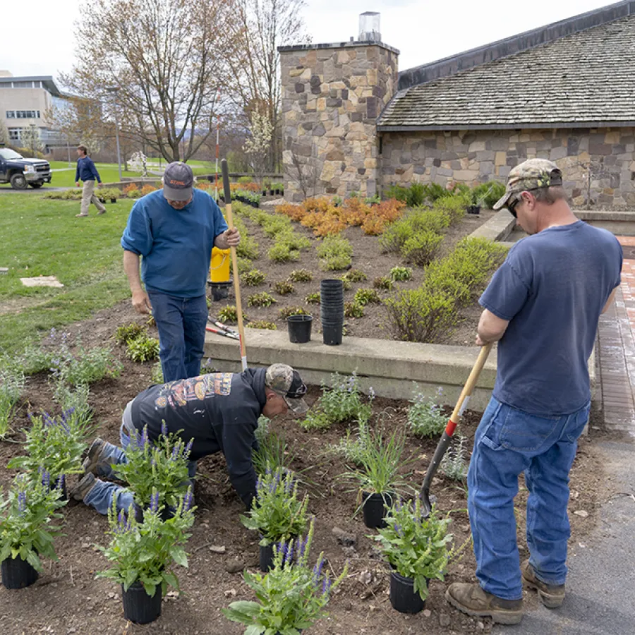“The most important thing to understand about our commencement preparation is that we try to clean and mulch and beautify the entire campus from one end to the other,” said Ernie McClatchie ’01, executive director of maintenance, grounds and transportation. “We will work all hours to ensure we get things done.”