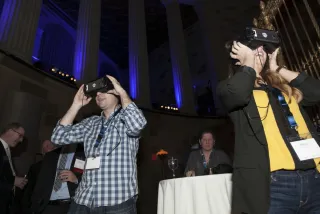 The Los Angeles festivities followed regional events in New York City, Boston and Chicago. At each event, a 360-degree virtual campus tour brought alumni back to Ithaca. Attendees were also able to make a wish for IC by tossing a coin into a three-dimensional replica of the college’s iconic Dillingham fountains.