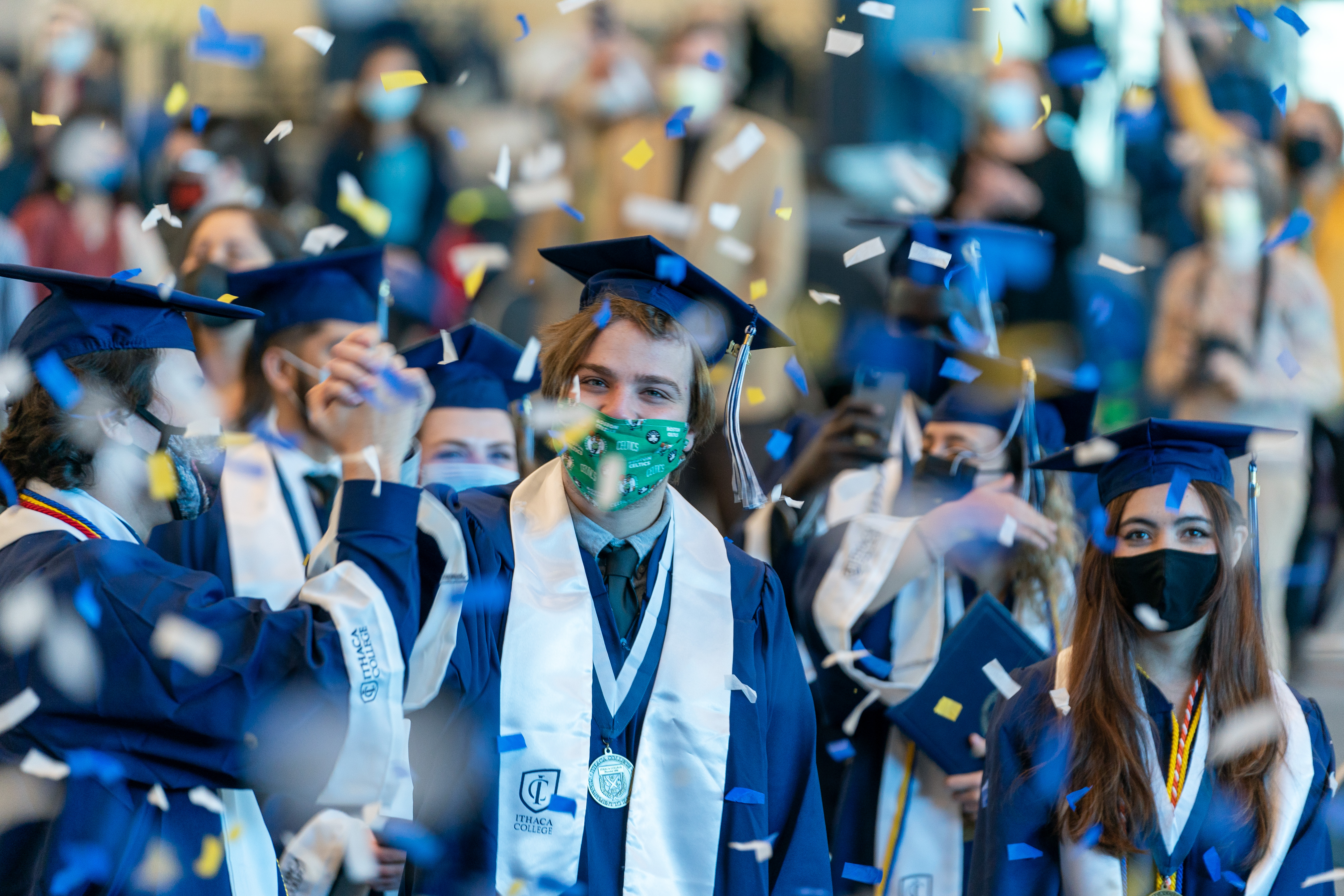 “In an uncertain and unprecedented time, you, our wonderful graduates, have met the challenge of the moment with style and flair,” said Staurowsky. “This graduation day is a testament to the hallmarks that so distinguish Ithaca students in my mind – your can-do spirit, persistence in the face of the unexpected, inventiveness, and endless good humor.”