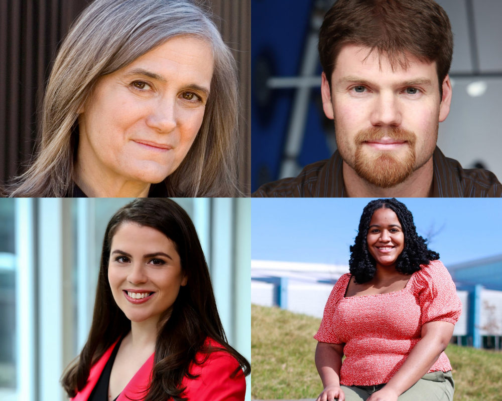 Clockwise from top left: Amy Goodman, Jeff White ’98, Sheila Katz ’05, and Letícia Guibunda ’22. (Photos submitted)