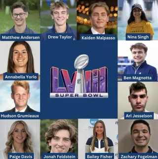 This year, Annemarie Farrell, associate professor of Sport Management, will be joined by Matthew Andersen ’26, Drew Taylor ’25, Kaiden Malpasso ’26, Nina Singh ’24, Ben Magnotta ’27, Ari Jesselson ’25, Zachary Fogelman ’26, Bailey Fisher ’25, Jonah Feldstein ’25, Paige Davis ’26, Hudson Grumieaux ’24, and Annabella Yorio ’25.