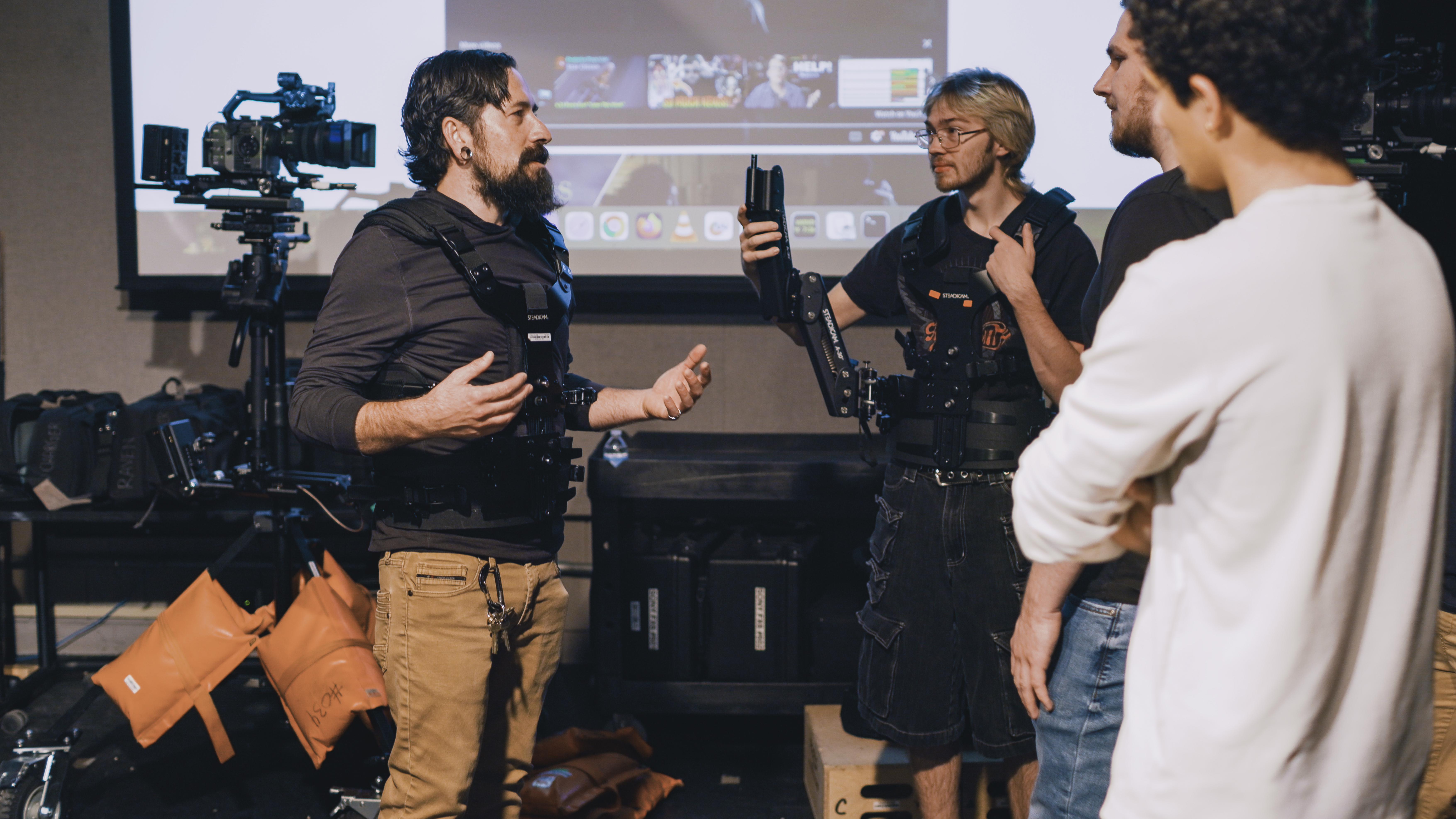 At the center of all this movement is Christian deBrigard ’07, who, as the portable media production equipment manager, is in charge of making calm of the chaos: keeping things organized and ensuring students have the necessary equipment to produce their projects. Each semester, deBrigard and colleague Ryan Berryann, who is the PPECS and facilities manager, oversee more than 1,500 separate checkouts of gear and see upwards of 20,000 pieces of equipment come and go.
