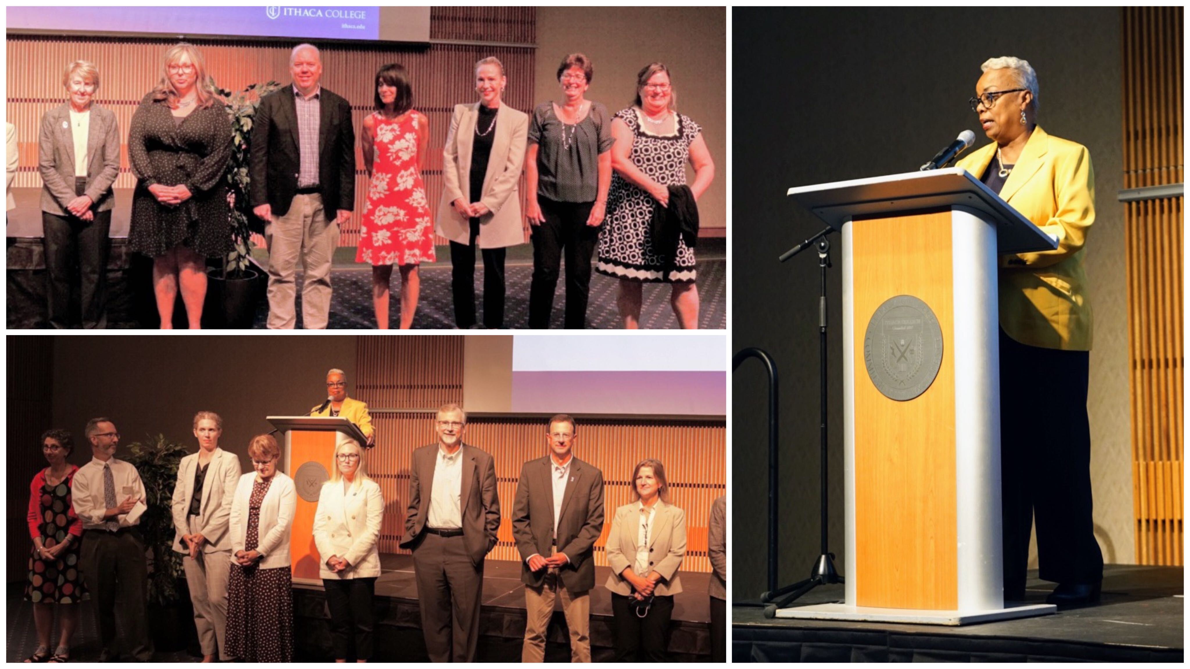 The two new vice presidents then took the stage to share their excitement to have joined the Ithaca College leadership team.