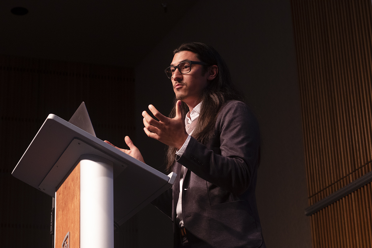 Jeff Orlowski-Yang presenting at Ithaca College in 2019.