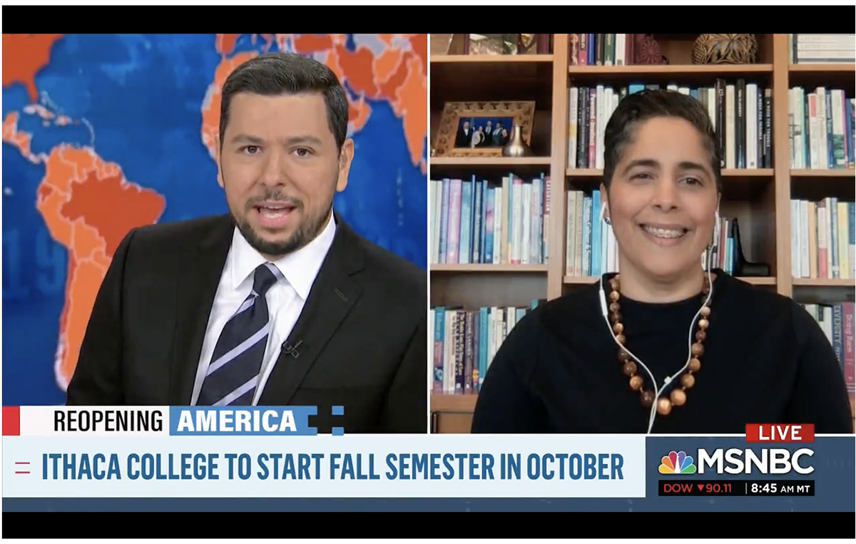 Ithaca College President Shirley M. Collado appeared on MSNBC Friday morning, discussing the college’s plan to start the fall semester in October, which was announced earlier in the week.