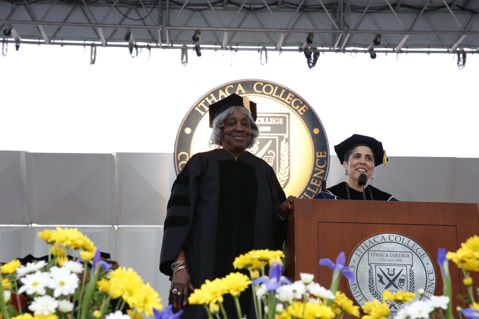 The award is supported through a gift from Gloria Hobbs, an honorary member of the Ithaca College Board of Trustees. Hobbs was inspired to create the award after learning about Collado’s inclusive vision for the Ithaca College community through presidential communications and meeting her at the college’s 2018 Commencement ceremony, at which Hobbs received an honorary Doctor of Letters degree.