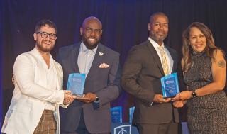 Nine distinguished members of the Ithaca College community were honored with the college’s top alumni awards at a Nov. 10 dinner in Manhattan’s Marriott Marquis to kick off the IC in The City - Reunion and Cortaca '22 weekend.