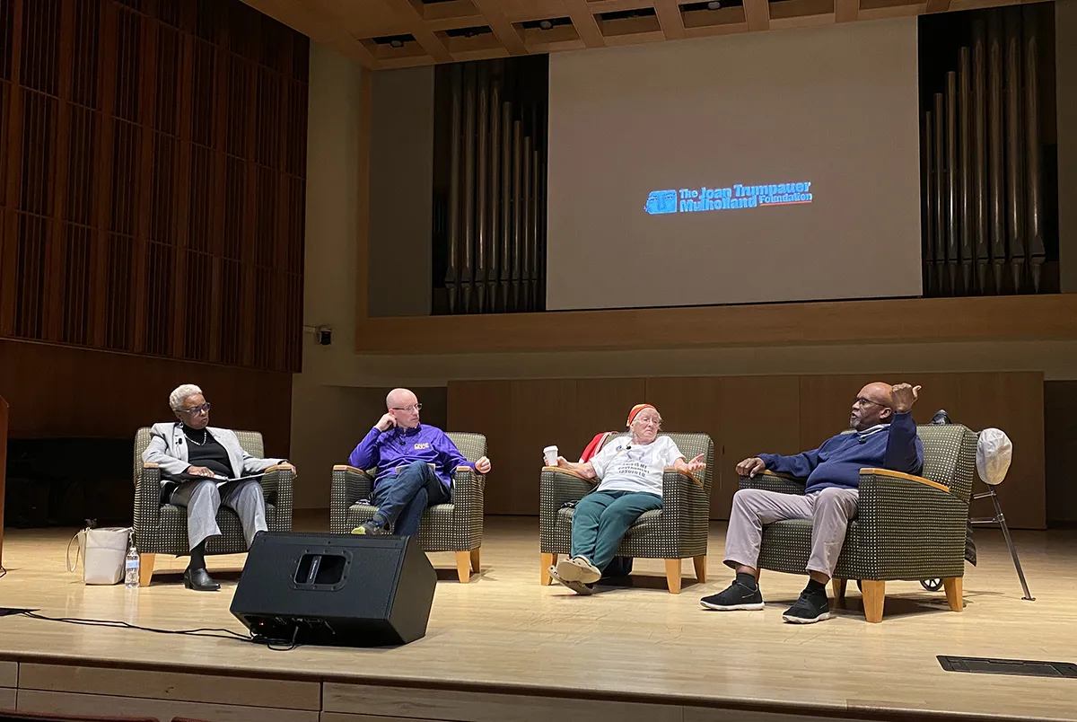 The topic of the discussion was “Students as Advocates and Change Agents,” and the speakers were: Luvaghn Brown, a civil rights activist who was a member of the Student Nonviolent Coordinating Committee (SNCC), a Civil Rights organization founded in 1960; Civil Rights icon Joan Triphammer Mulholland; and her son, Emmy-award winning filmmaker Loki Mulholland ’93.
