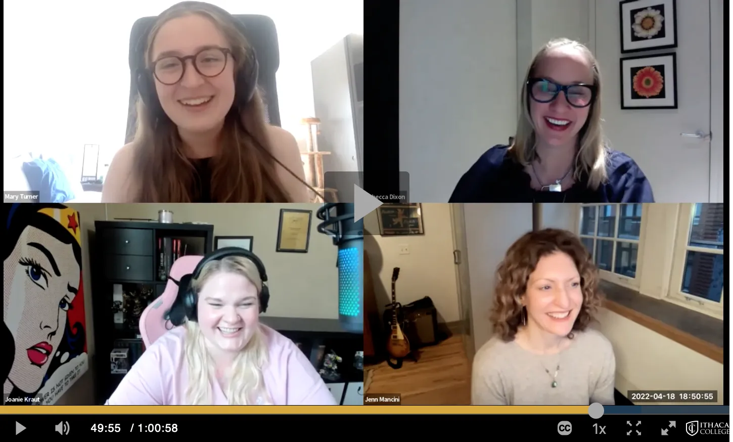 The third panel executive was Jenn Mancini ’96, director of Sales at PlayerWON, which brings full-screen sponsored brand video to free-to-play console and PC games, and a co-founder of Womxn in Gaming NYC. She proposed the webinar’s topic following up on a Park Roundtable webinar she participated in last year on the gaming industry opportunity. She also recruited this year’s panelists in conjunction with Alex Estabrook, instructor, Park School of Communications and advisor to IC’s Esports Club, who coordinated the event, which was hosted and moderated by Mary Turner ’22, IC Esports Club president.