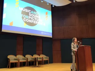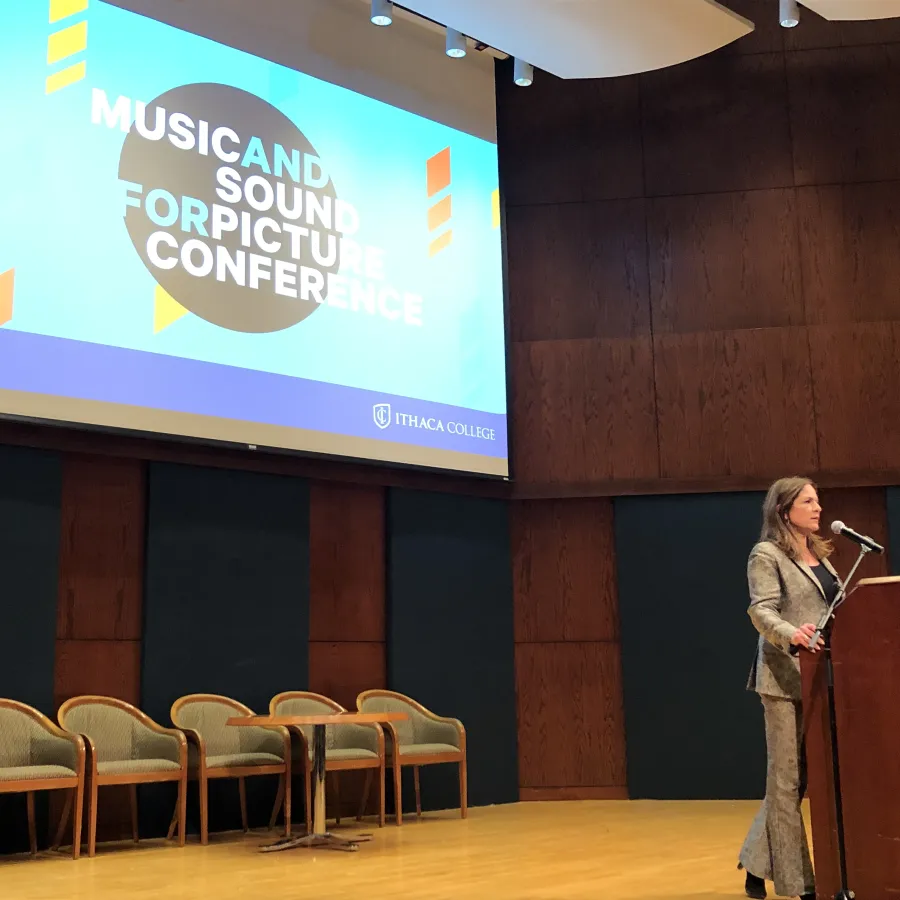Cathy Schulman gave the keynote address at the inaugural Music and Sound for Picture Conference on April 6.