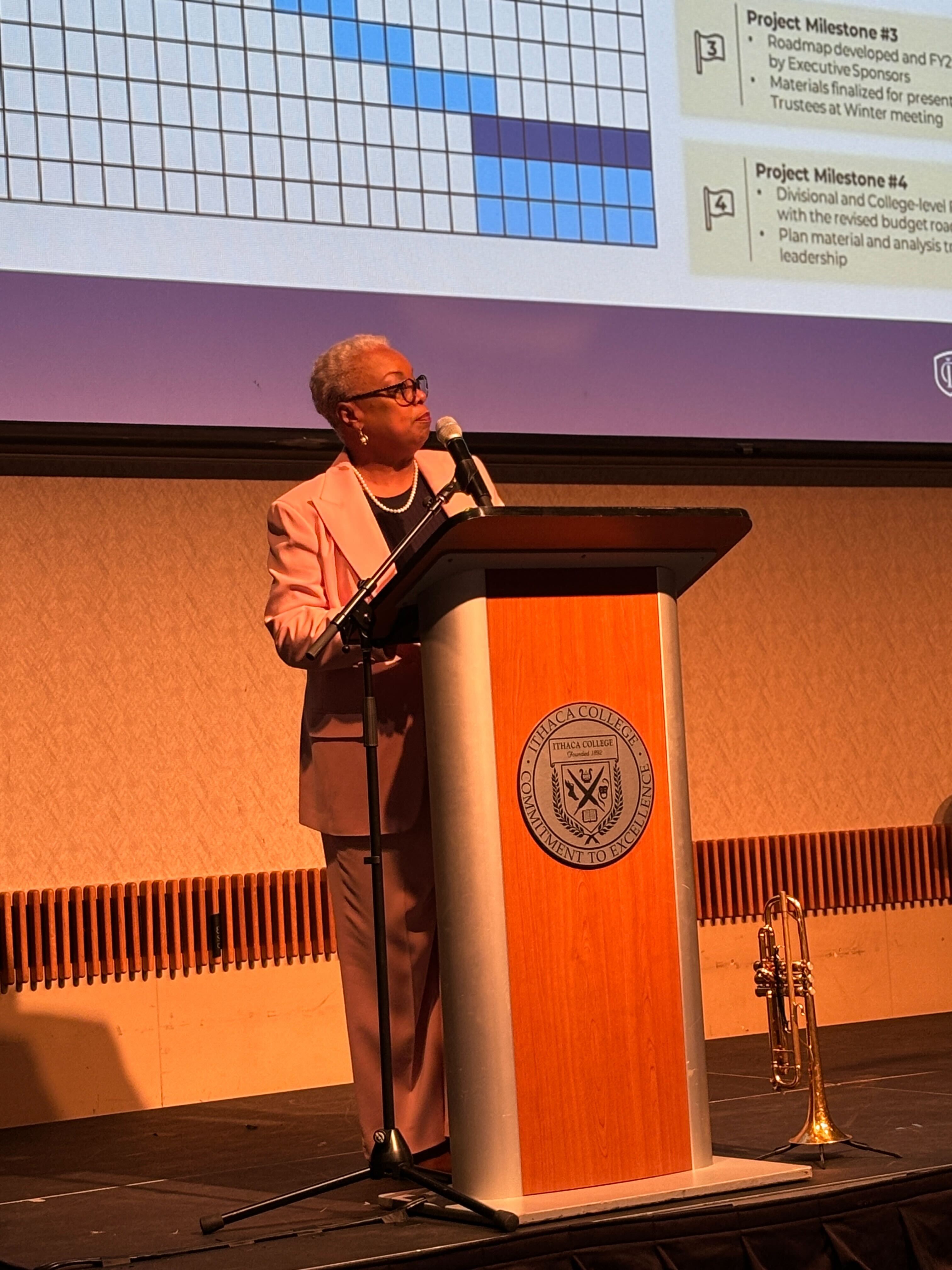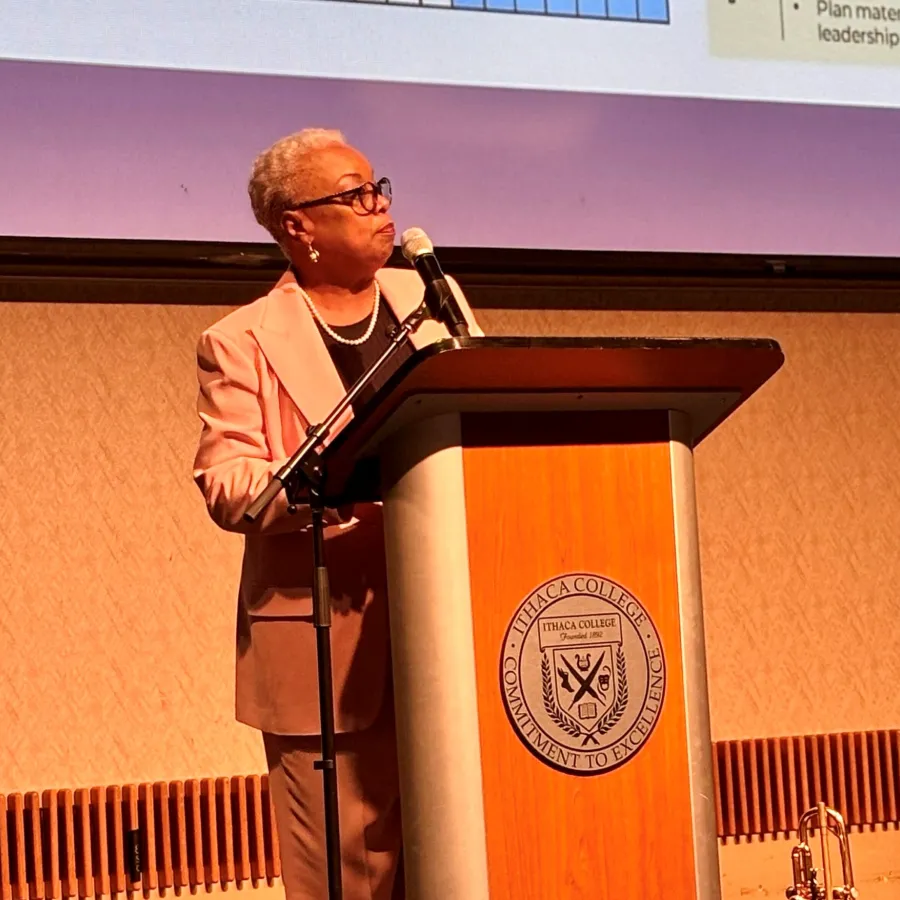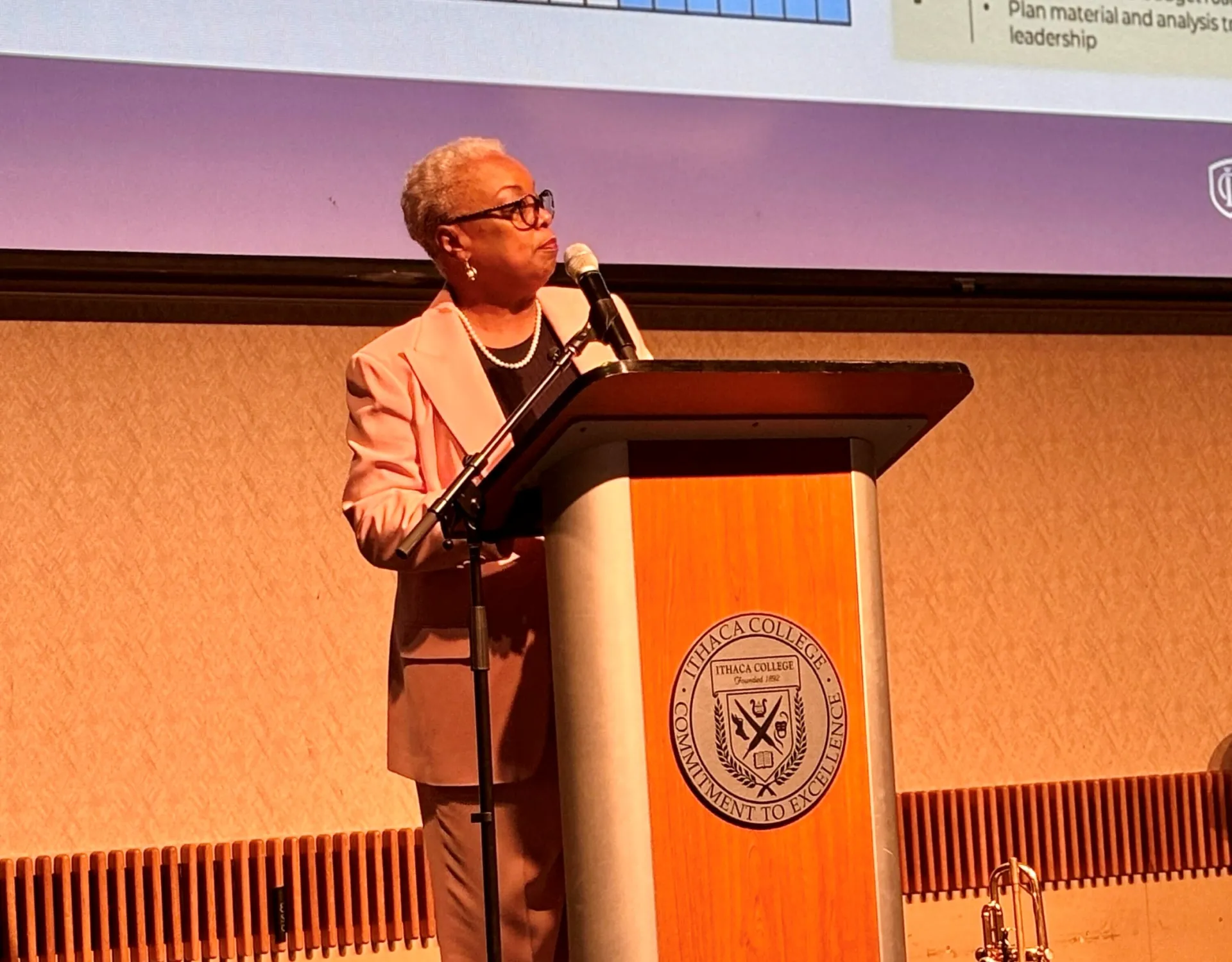 At Ithaca College’s State of the College meeting on Oct. 22, President La Jerne Terry Cornish announced that the College is conducting an administrative review with the Huron Consulting Group as part of moving the institution toward a balanced budget by fiscal year 2028.