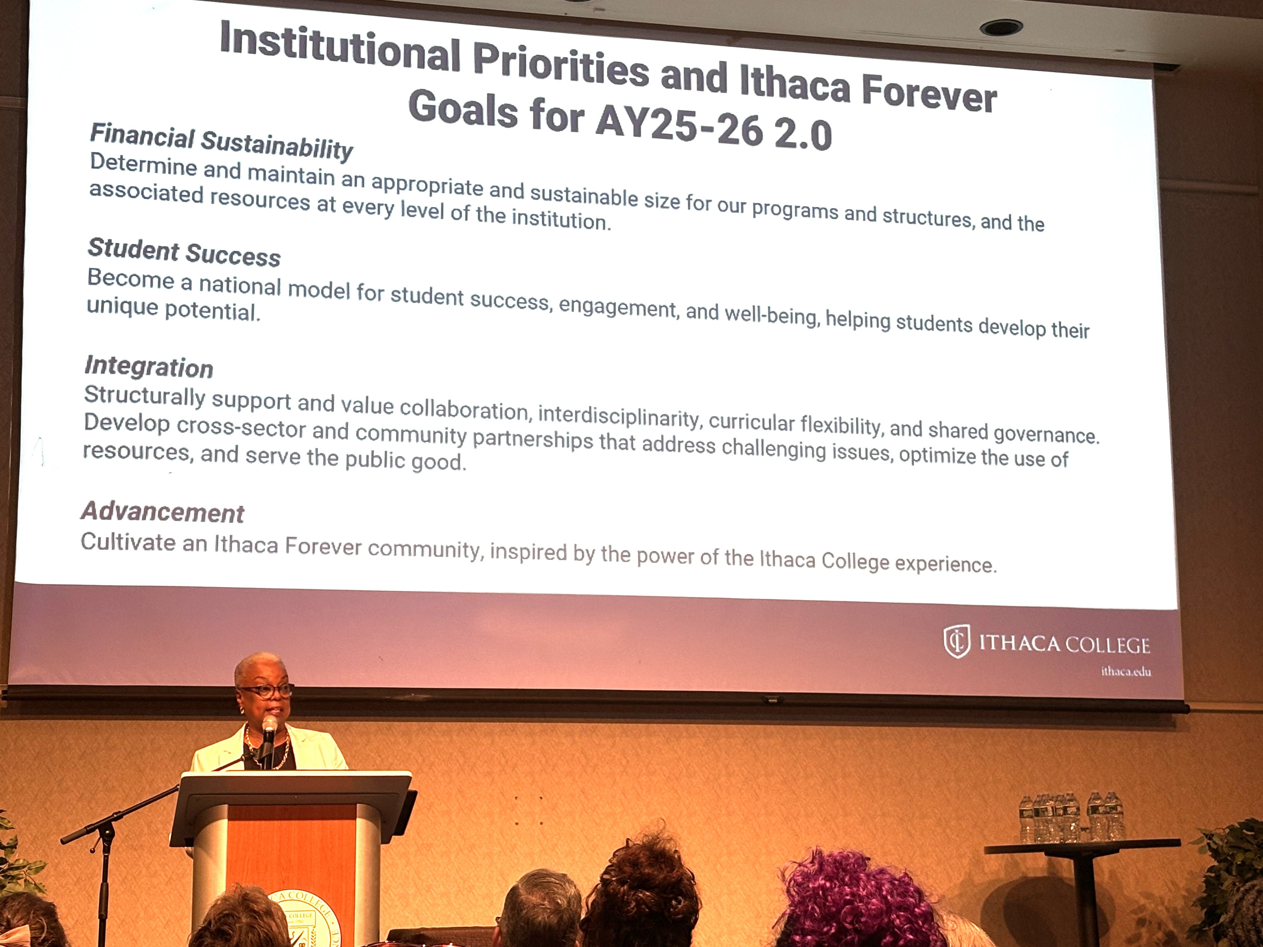Cornish noted that action has already begun on many of these priorities, such as the launching of the Academic Support Center, partnering with Tompkins Cortland Community College to create direct pathways to IC from specific programs, and working with local and regional employers, including Centralus Health, the City of Ithaca, and Tompkins County, to ascertain future workforce needs and to align IC’s curriculum and offerings with those needs.